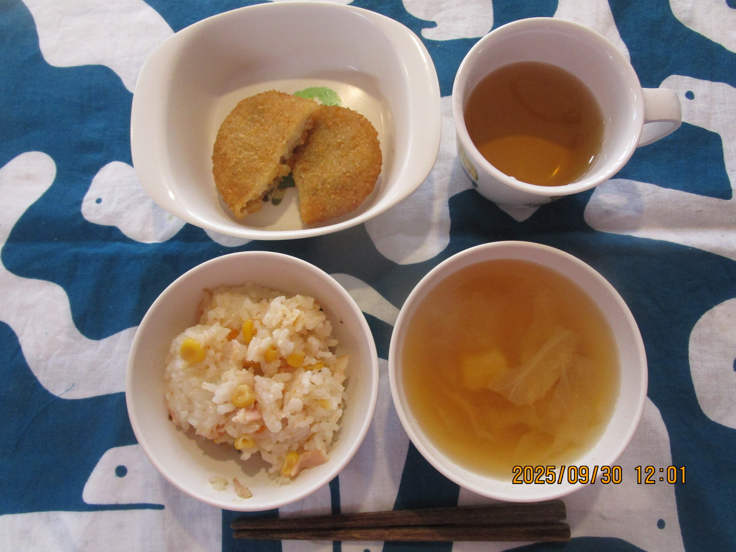 9月30日(火) 炊き込みごはん 牛肉コロッケ 野菜の味噌汁