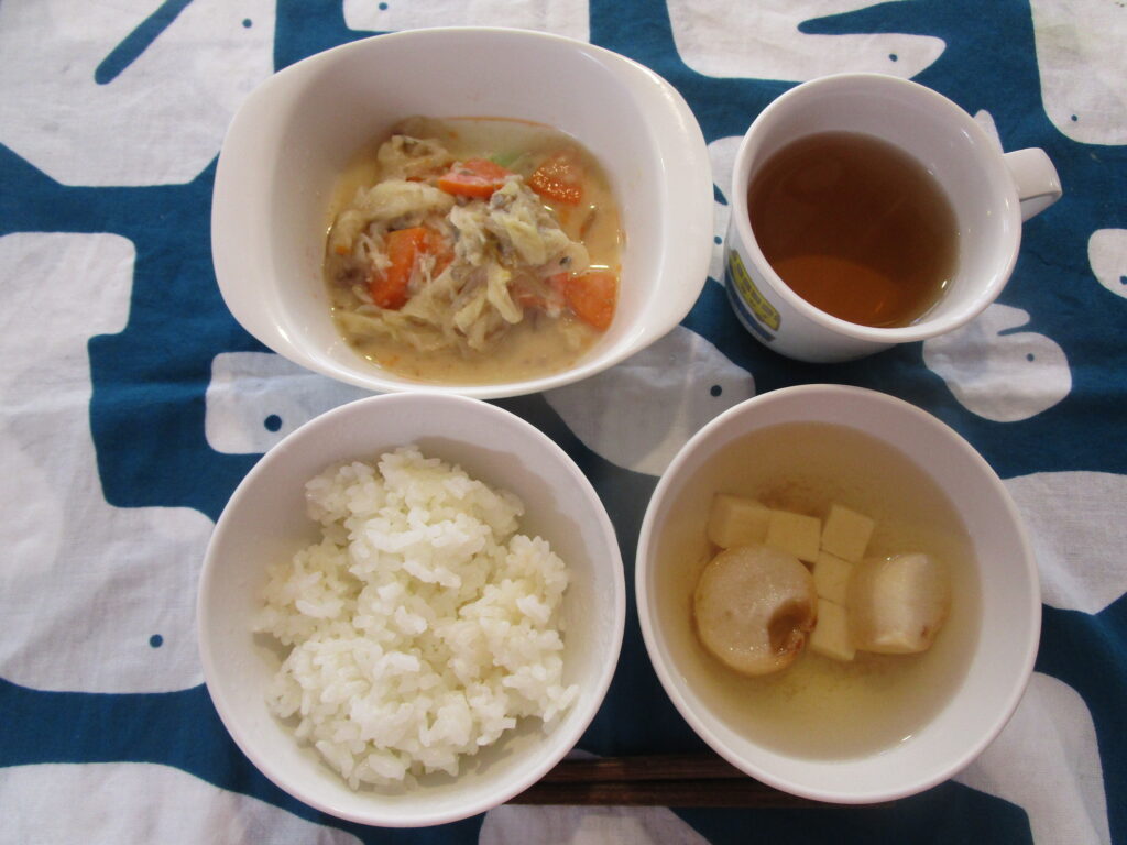 10月7日(火)ごはん 鮭のちゃんちゃん焼き 豆腐と麩のすまし汁