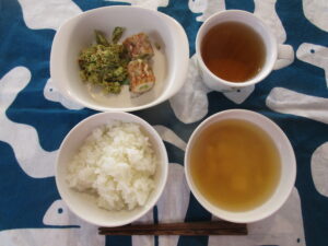11月6日(木)ごはん 竹輪の磯辺揚げ ブロッコリーのサラダ 豆腐と油揚げの味噌汁