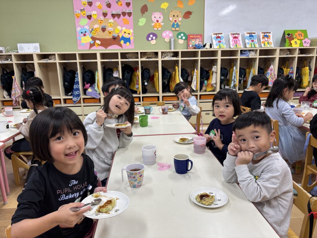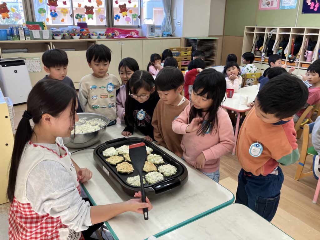 11月にひまわり、つくし組が豆腐ときゃべつのお好み焼きのクッキングをしました。