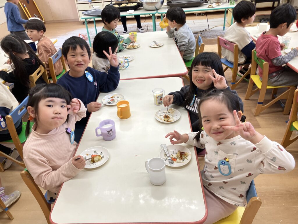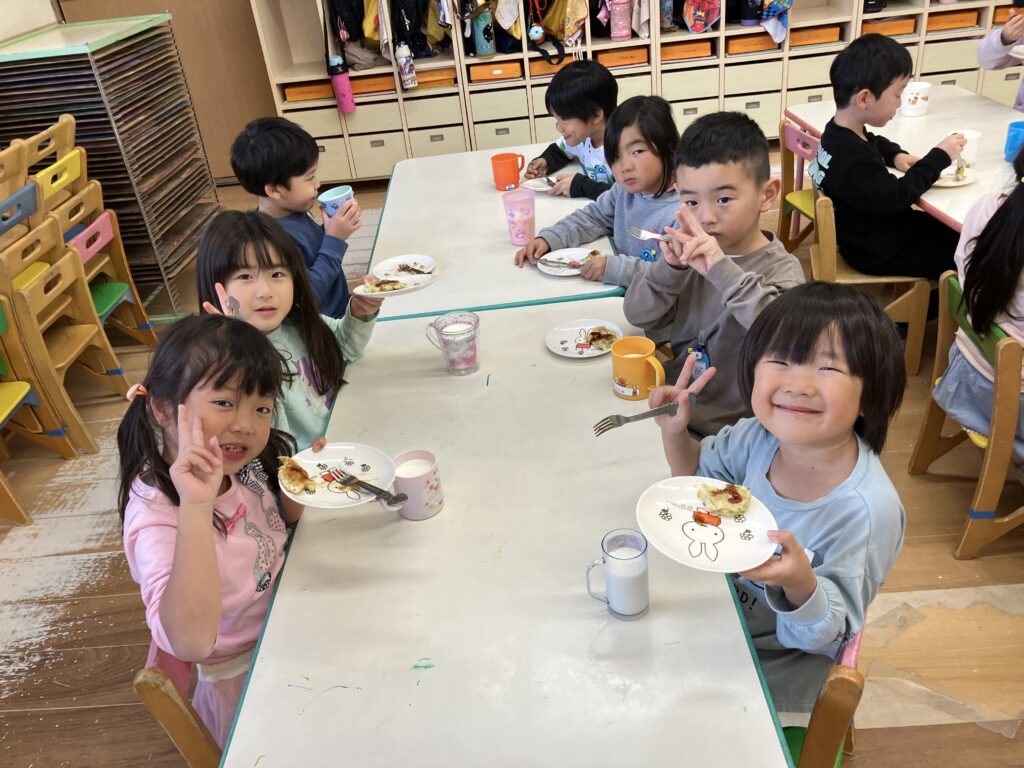 ミニサイズのお好み焼きを作ったのですが、4枚5枚と美味しそうにたくさん食べてくれました。
