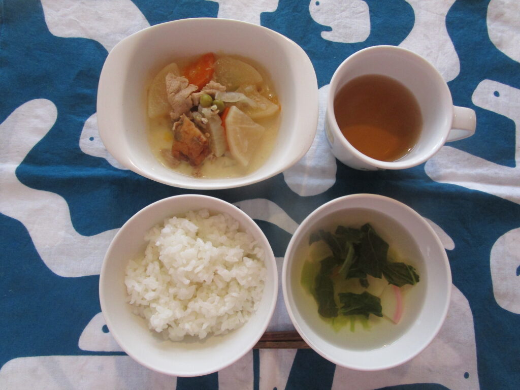 12月3日(水) ごはん 大根と豚肉の煮物 小松菜とかまぼこのすまし汁