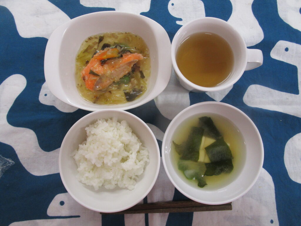 12月16日(火) ごはん 鮭の甘酢あんかけ 豆腐と若布の味噌汁