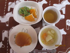 1月15日(木) パン ささみチーズカツ コンソメスープ