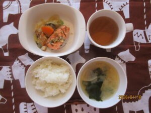 1月16日(金) ごはん 鮭の土佐漬け焼き 白菜としめじの煮浸し 大根と若布の味噌汁