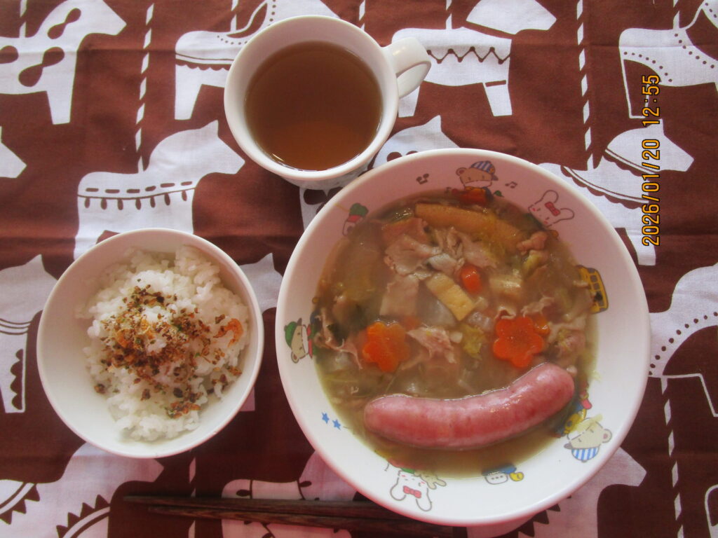 1月20日(火) ごはん 椥辻特製Caふりかけ 豚汁 ウィンナー