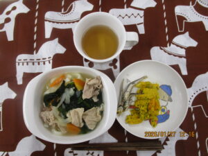 1月27日(火) 若布うどん パンプキンサラダ カリカリ魚