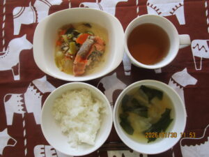 1月30日(金) ごはん 鮭の土佐漬け焼き 白菜としめじの煮浸し 大根と若布の味噌汁