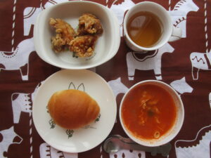 2月16日(月) パン 鶏肉の唐揚げ ミネストローネスープ