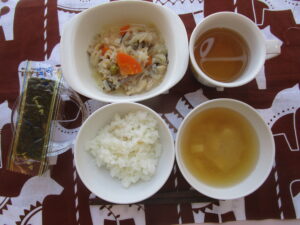 2月18日(水) ごはん 味付けのり 切り干し大根と豚肉の煮物 えのきと豆腐の味噌汁