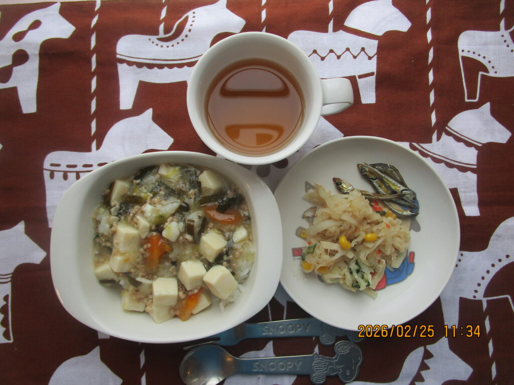 2月25日(水) マーボー丼 切り干し大根のサラダ かりかり魚