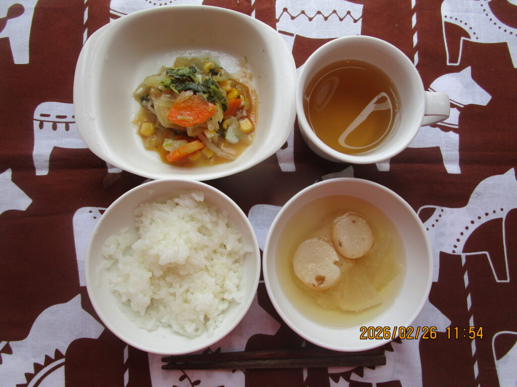 2月26日(木) ごはん 白身魚のホイル焼き 大根と麩の味噌汁