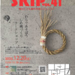 2025年11月18日 / 最終更新日時 : 2025年11月18日 nagitsuji お知らせ 12月20日(土)なぎつじSKIPvol.41 「わらで遊ぼう しめ縄ワークショップ」開催します 今年の締めくくりに、そして新しい年を迎える準備に、 自分たちの手で作ったしめ縄を飾ってみませんか? みなさまのご参加を心よりお待ちしています。 詳細はこちらから なぎつじSKIP ホームページ 【講師】 muu 辻村由美 […]