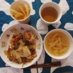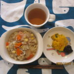 2025年10月3日 / 最終更新日時 : 2025年10月3日 nagitsuji 給食 10月3日(金) ソース焼きそば 鶏肉の唐揚げ フライドポテト きゃべつと油揚げの味噌汁 今日は秋祭りで給食の献立も子どもたちが好きな唐揚げやポテト、焼きそばにしました。 「だいすきなものばかり」とつくし組では喜んで食べてくれました。 容器もお祭り風で「かわいい」と好評でした。 「おいしいね」とお友達と顔を見 […]