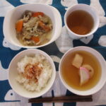 10月27日㈪ ごはん かつおふりかけ 切り干し大根と豚肉の煮物 麩とかまぼこの味噌汁