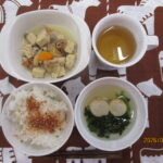 1月19日(月) ごはん かつおふりかけ 高野豆腐と豚肉の煮物 ほうれん草と麩のすまし汁