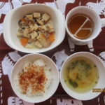 3月9日(月) ごはん かつおふりかけ 高野豆腐と豚肉の煮物 油揚げと菜の花の味噌汁