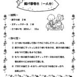 2025年10月14日 / 最終更新日時 : 2025年10月14日 nagitsuji 園からのお知らせ 給食室レシピ 揚げ春巻き 先日ひまわり組がクッキングを行いました。 お家でも作りたいとリクエストもあったのでレシピと様子をお伝えします。 さつまいものマッシュは餃子を包むように、スティックチーズはくるくる巻いて最後に水もきちんとぬって完成!「美味 […]